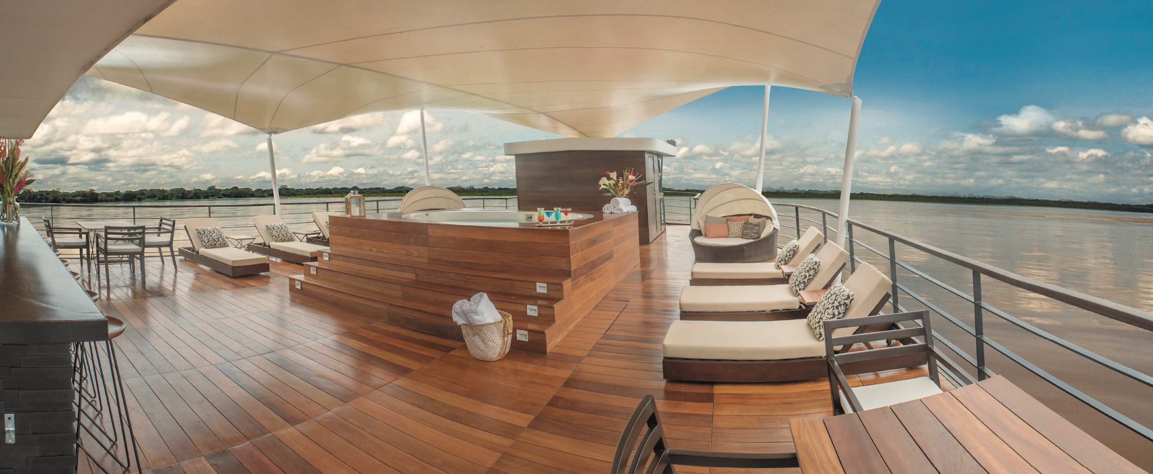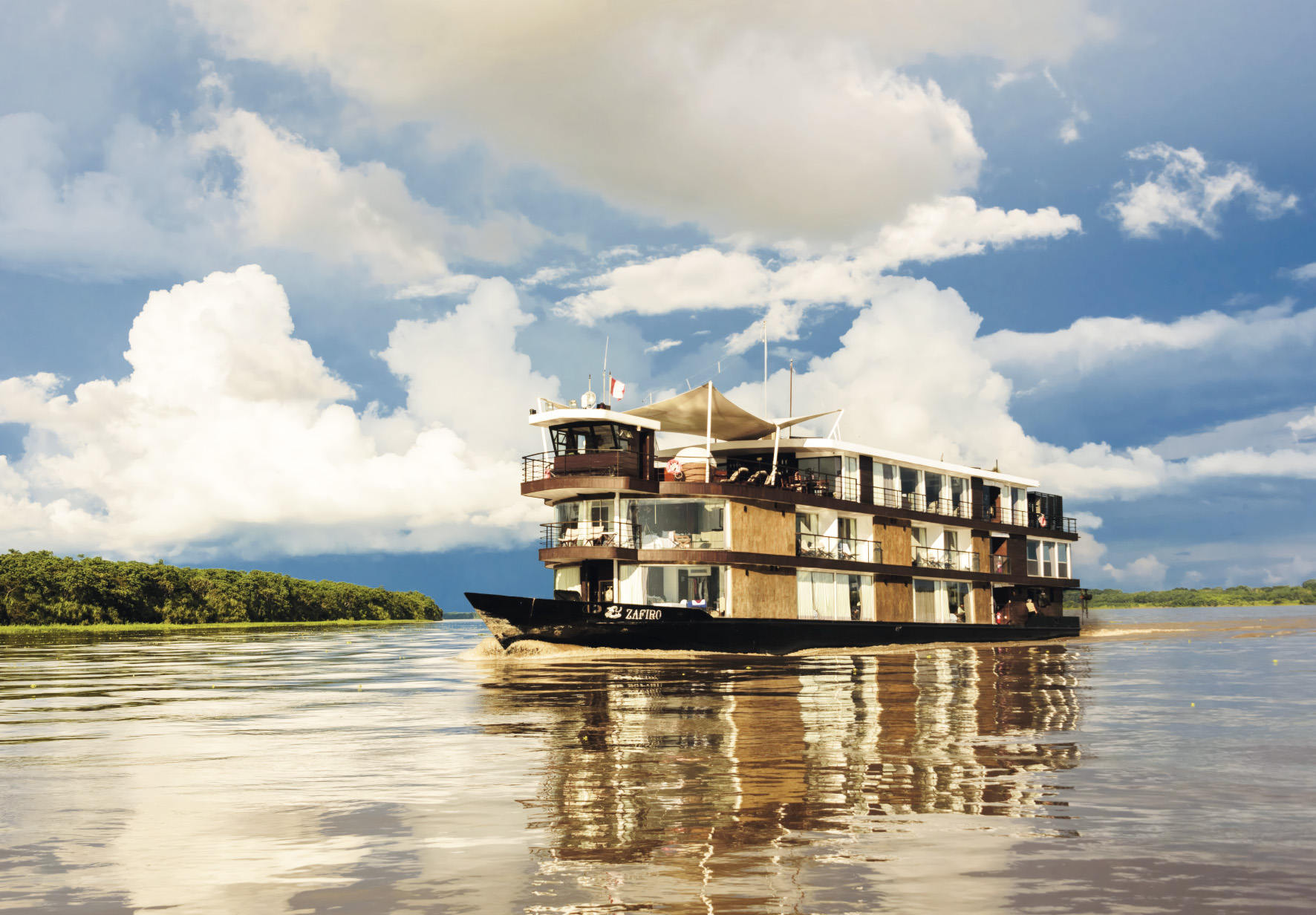 À bord du navire boutique Zafiro, l’Amazonie se dévoile dans toute sa richesse et sa diversité. Vivez une croisière d’expédition de grand luxe sur le fleuve Amazone, avec au programme : explorations quotidiennes en skiff, observation de la faune (dauphins roses et gris, de singes hurleurs, de paresseux, de caïmans, d’anacondas, de grenouilles aux couleurs éclatantes...), rencontres authentiques avec les communautés locales, cérémonies traditionnelles et gastronomie amazonienne raffinée.